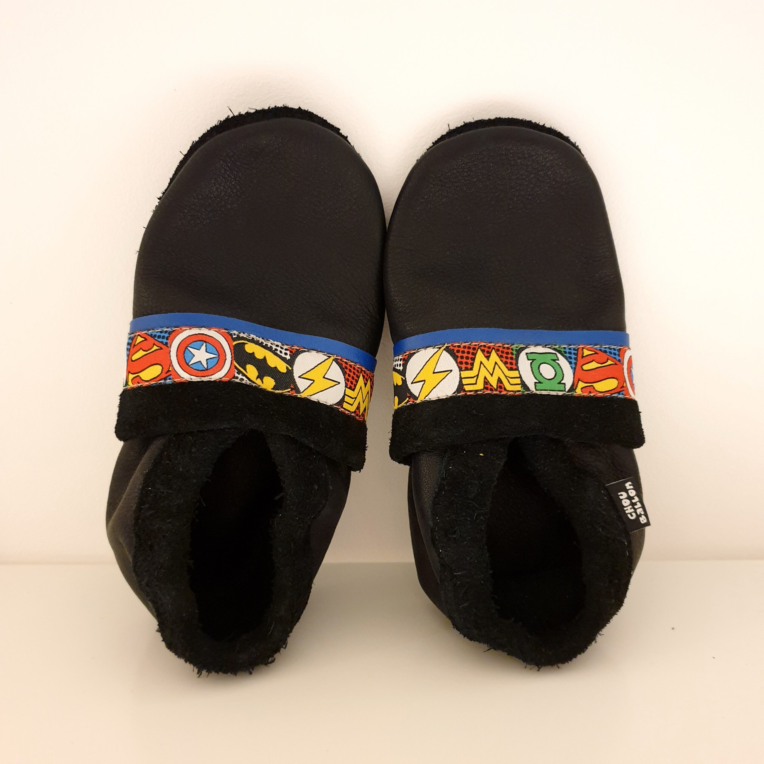 Pour les petites maladresses du quotidien, nettoyer les chaussons avec une éponge humide. Brosser à sec les semelles pour enlever la poussière, et si la semelle est très brillante, vous pouvez utiliser une brosse très dure, voire métallique spécial daim, pour retrouver des semelles antidérapantes. 1 fois par an, si nécessaire, vous pouvez laver les chaussons en cuir souple à la main, à l’eau tiède à 30°C  avec une lessive douce. Laisser sécher les chaussons 24h à 48h épinglés sur un fil à linge ou à plat. SURTOUT PAS DE SÈCHE LINGE ! Froisser les chaussons dans vos mains avant de les remettre à vos pieds, ou aux pieds de vos loustics. Vous retrouverez des semelles antidérapantes, et des chaussons colorés 🙂